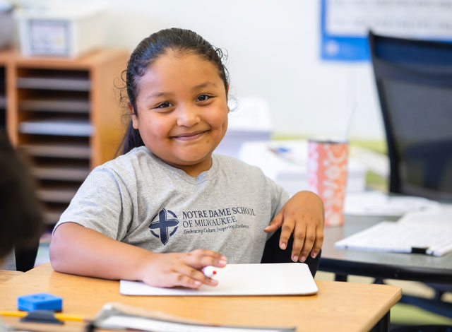A sponsored ministry of the School Sisters of Notre Dame, Notre Dame School of Milwaukee (NDSM) is a Catholic, dual language K3–8 school serving over 760 students across three campuses on Milwaukee’s south side. Rooted in faith and family, we offer single-gender middle schools, strong support, and excellent academic results to create wide-open futures. Explore the programs that help our students grow into confident, capable, and compassionate leaders.